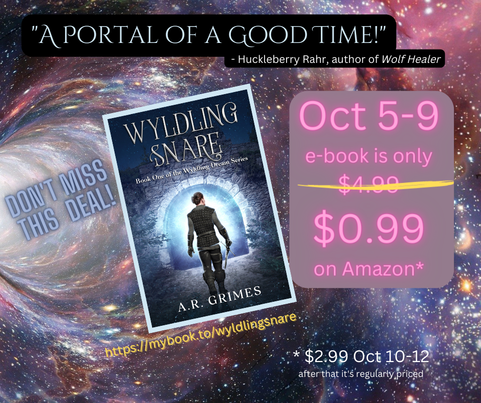 …And it won’t cost you your soul. Beginning tomorrow, October 5th, the Wyldling Snare e-book is only $0.99 on Amazon! Here is the link: https://mybook.to/wyldlingsnare. This is a Kindle Countdown deal, which means the price will go up after a few days. I set it so it’ll be $0.99 October 5th through October 9th, and then the price increases to $2.99 October 10th through the 12th. After that, Wyldling Snare will be regular price again. If you were on the fence about purchasing it–for whatever reason–this is an opportunity to obtain it at a low cost.